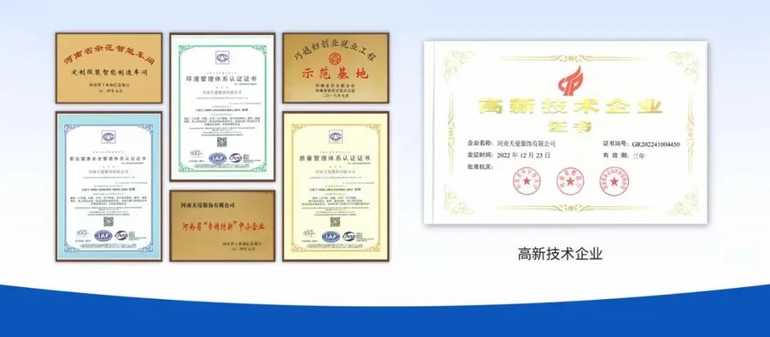 天曼服飾智能化工廠還先后被河南省工信廳認(rèn)定為“專精特新智能化工廠”,被河南省科技廳評(píng)定為 “高新技術(shù)企業(yè)”,并榮獲 “河南省智能制造試點(diǎn)示范企業(yè)” 稱號(hào)。旗下 “屹奧校服” 品牌更在行業(yè)內(nèi)屢獲殊榮:2023 年摘得 “全國十大校服最具影響力品牌”,2025 年獲評(píng) “全國校服四星級(jí)標(biāo)準(zhǔn)校服生產(chǎn)基地”,成為河南省唯一獲此雙項(xiàng)榮譽(yù)的校服企業(yè)。這些資質(zhì)不僅彰顯了企業(yè)在技術(shù)創(chuàng)新與品質(zhì)管控上的領(lǐng)先優(yōu)勢(shì),更成為天曼服飾拓展跨境市場(chǎng)的 “硬核背書”。