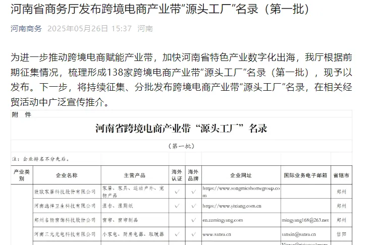 2025 年 5 月 26 日,河南省商務(wù)廳正式發(fā)布第一批河南省跨境電商產(chǎn)業(yè)帶 “源頭工廠” 名錄,河南天曼服飾有限公司成功入選,成為全省服裝行業(yè)跨境電商領(lǐng)域的標(biāo)桿企業(yè)。