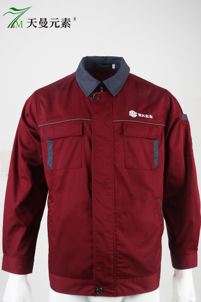 目前,工作服已經進入尾部工作,開始在打包了,我們拿一件樣衣給大家展示下,這次采用棗紅色為主色調,領口為深灰色,顯得沉穩大氣,款式還是傳統的工裝款式,胸口是白色刺繡logo,相信員工穿上這款工作服會更加努力投入工作~