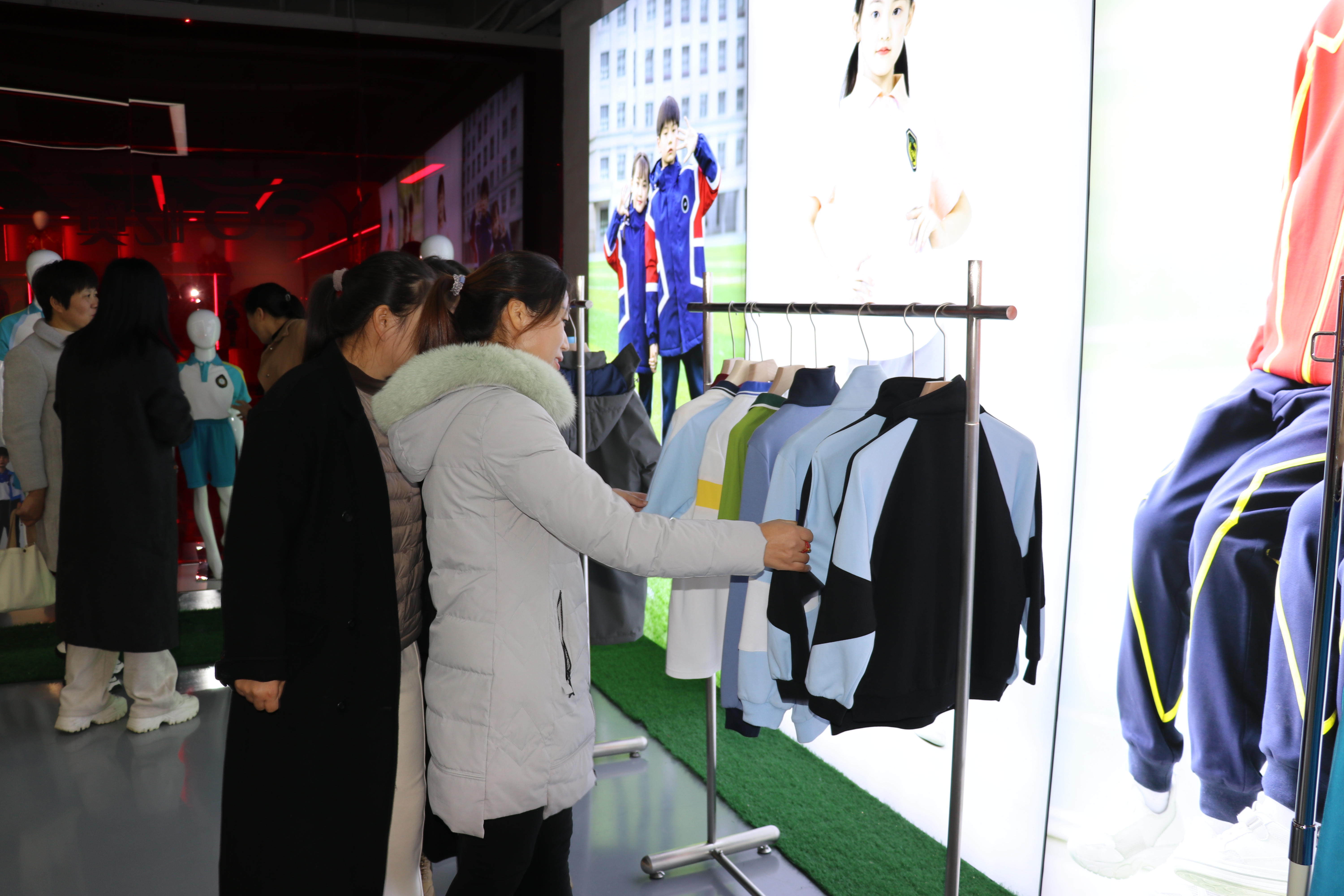 代表們留足“屹奧校服”沉浸式展廳,被眼前的各類款式校服所吸引,得知“屹奧校服”被評選為“中國校服10大有影響力品牌”,遠銷國內外200所學校、年產50多萬套校服的驕人成績,大家為家鄉的女企業家點贊!