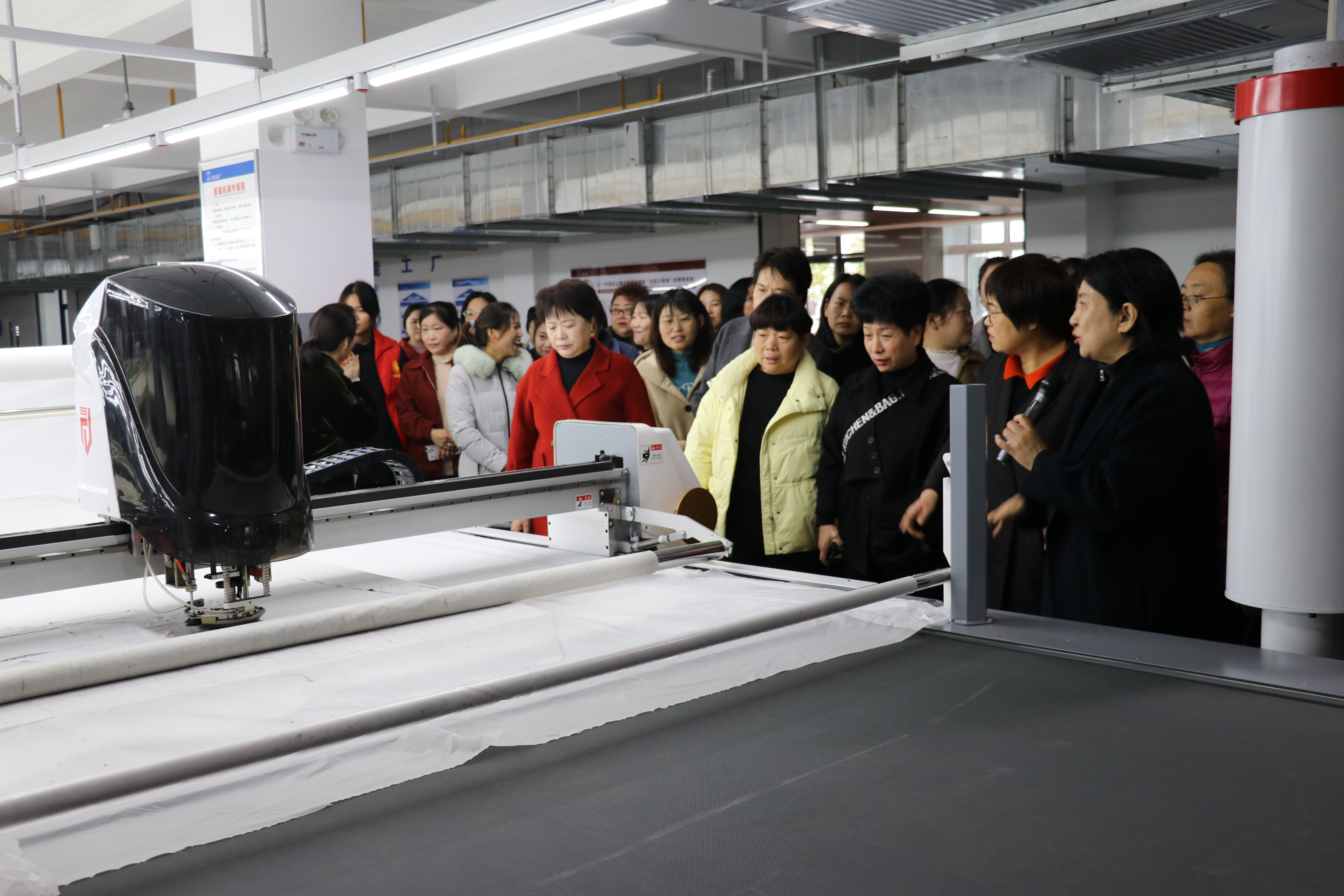 走進智能化車間,各種智能化設備讓參觀的婦聯代表眼界大開,智能化裁床、數字化吊掛生產線大大提高了生產效率和產品質量,隨著工廠各種智能化設備的使用,大大減輕了工人的勞動強度;來自國內外的訂單快速增長,充足的訂單、優美的環境、良好的福利,使工人們享受著工作和掙錢的快樂!