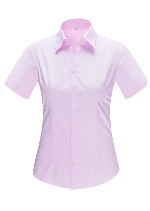 品名:女短袖v領襯衣;版型:修身版;貨號:YMD4505 ;面料:Y4516;顏色:粉紅明斜條紋 ;Fabric:C45/T55